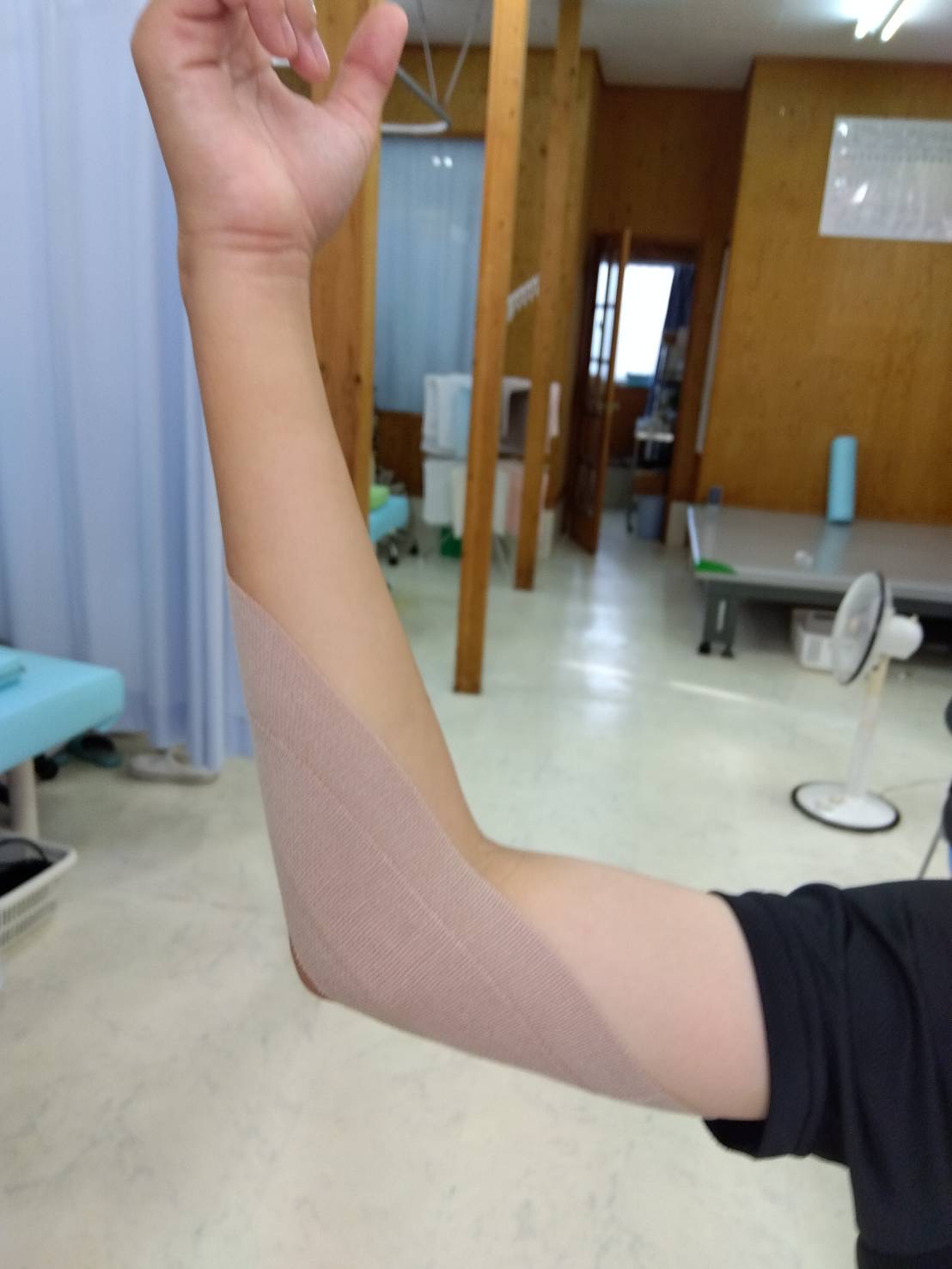 (2)テーピング指導(肘への負担軽減)