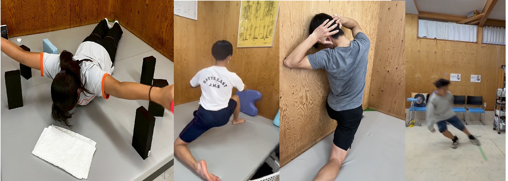 当院では、スポーツ鍼灸、関節可動域の調整、胸郭・骨盤のエクササイズ、動きのクセの分析、テーピング指導などを組み合わせ、